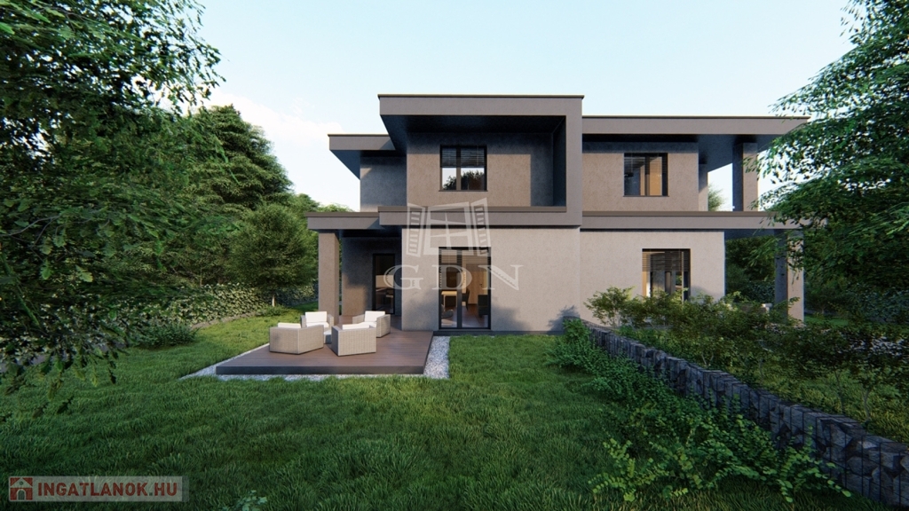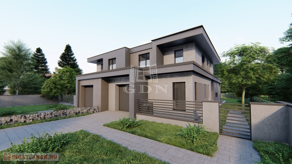 Modern kialakítású, kétszintes ikerházfél eladó, nyugodt kertvárosi környezetben, átgondolt alaprajzzal és korszerű műszaki tartalommal.