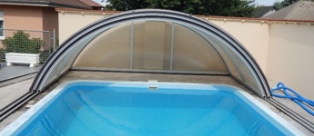 Az udvar és környezete rendezett, parkosított, itt kapott helyet egy elhúzhatós tetővel rendelkező medence, illetve egy szerszámos melléképület is.