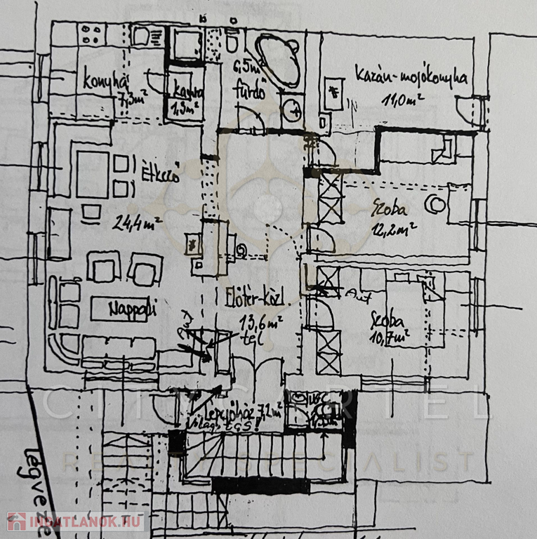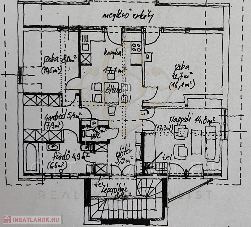 kb. 110 nm + 110 nm + nettó 80 nm (bruttó 110 nm) lakótér + lépcsőház + padlástér