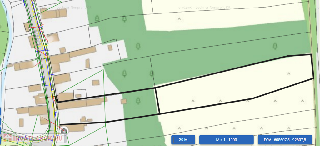 Közművek: Az ingatlanban vízhálózat, villamos energia, valamint ipari áram rendelkezésre áll. A telken belül található a gázcsonk, amely lehetőséget biztosít a gázbekötésre, bár jelenleg még nincs bevezetve a házba. A szennyvíz egy 6 m3- es emésztőaknával megoldott.