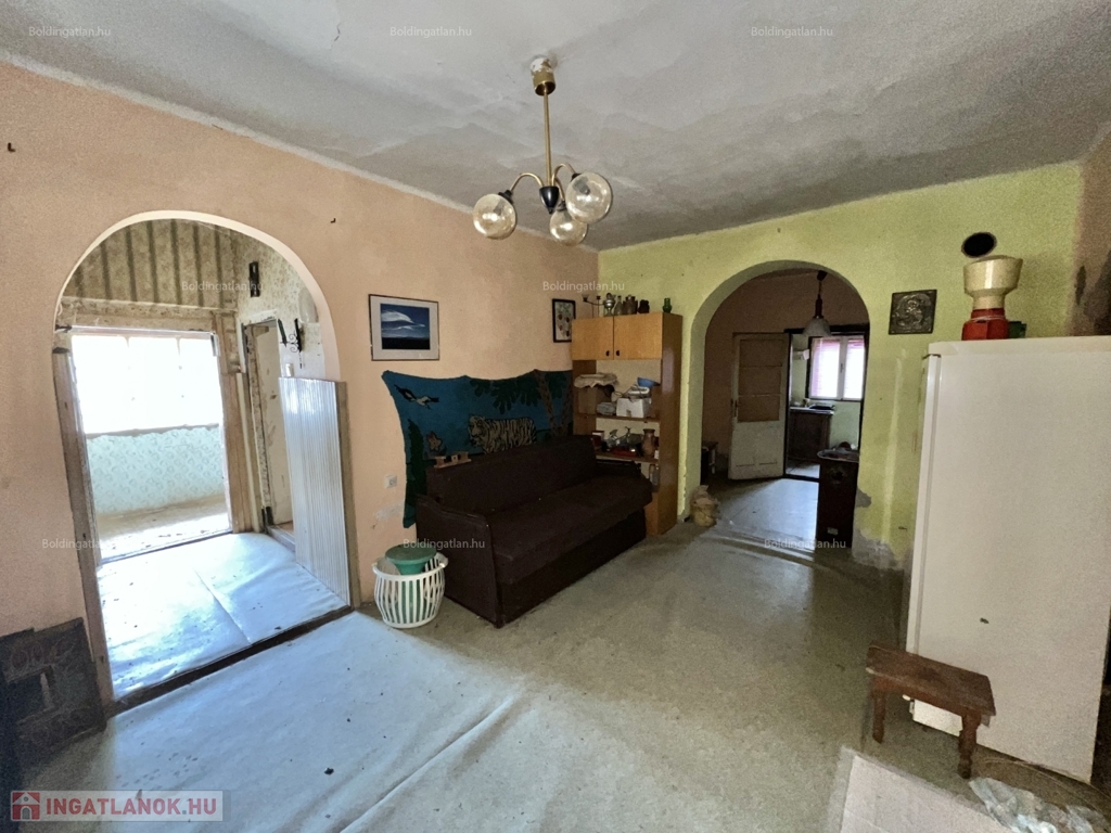 Felsőmocsoládon - a Balatontól autóval csupán 25 perc távolságra - kifejezetten csendes és bájos kis faluban lévő 128 m2-es családi ház - a képeken látható felújítandó állapotban - 2db különálló lakrésszel együtt eladó. 1) A 79,8 m2-es lakrészben előszoba, közlekedő, nappali, 2 szoba, konyha-étkező, spájz helyiségek kerültek kialakításra. 2) A 36,5 m2-es, külön bejárattal megközelíthető lakrészben előtér, 2 szoba, kamra kerültek kialakításra, valamint a fél szoba mögött külön bejárattal konyha található, amelyek akár igény esetén egybenyithatók. Az ingatlanhoz tartozik egy 12,3 m2-es műhely-tároló helyiség is, továbbá 2db tégla, illetve fából épült gazdasági helyiségek. Telek: 1.744 m2