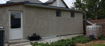 A kétszintes, eredetileg 1958-ban téglából épült házat 2023-ban kibővítették és korszerűsítették.