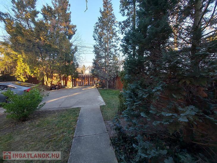 Az udvar rendezett, örökzöld fákkal, autóbeállási lehetőség adódott.