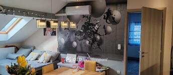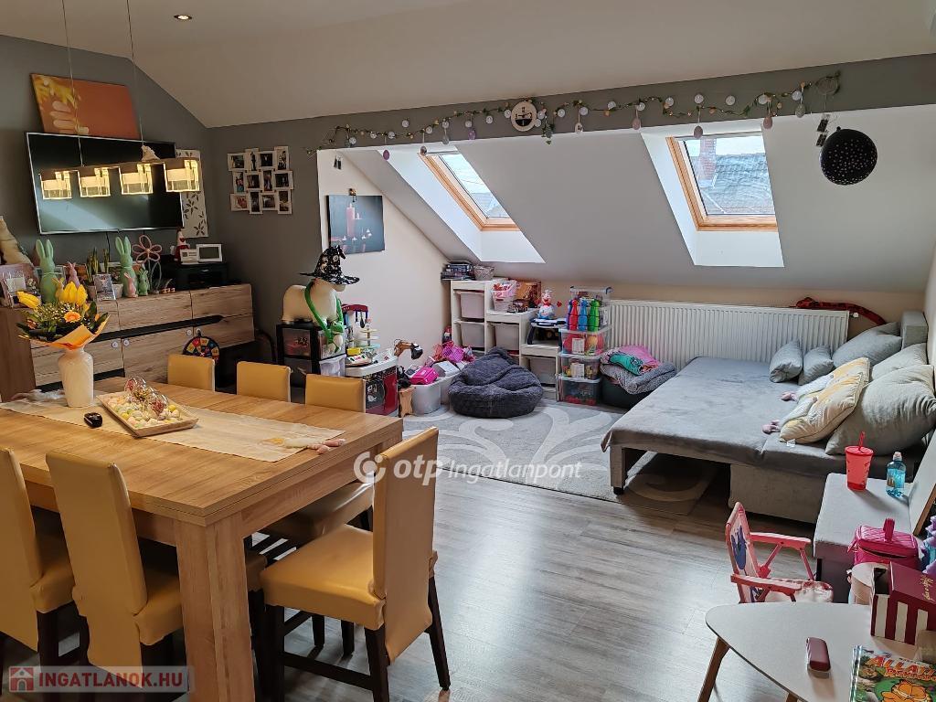 A tetőtér jelenleg lakott, itt található nagy nappali-konyha-étkező egyben. Kényelmes minden igényt kielégítő nagyméretű konyha van. A nappalit a konyhától az étkező választja el. Ebből a közös lakrészből nyílnak a 3 db hálószoba és a fürdőszoba. Van külön wc, tároló, speiz.