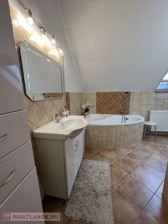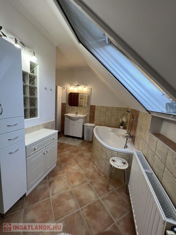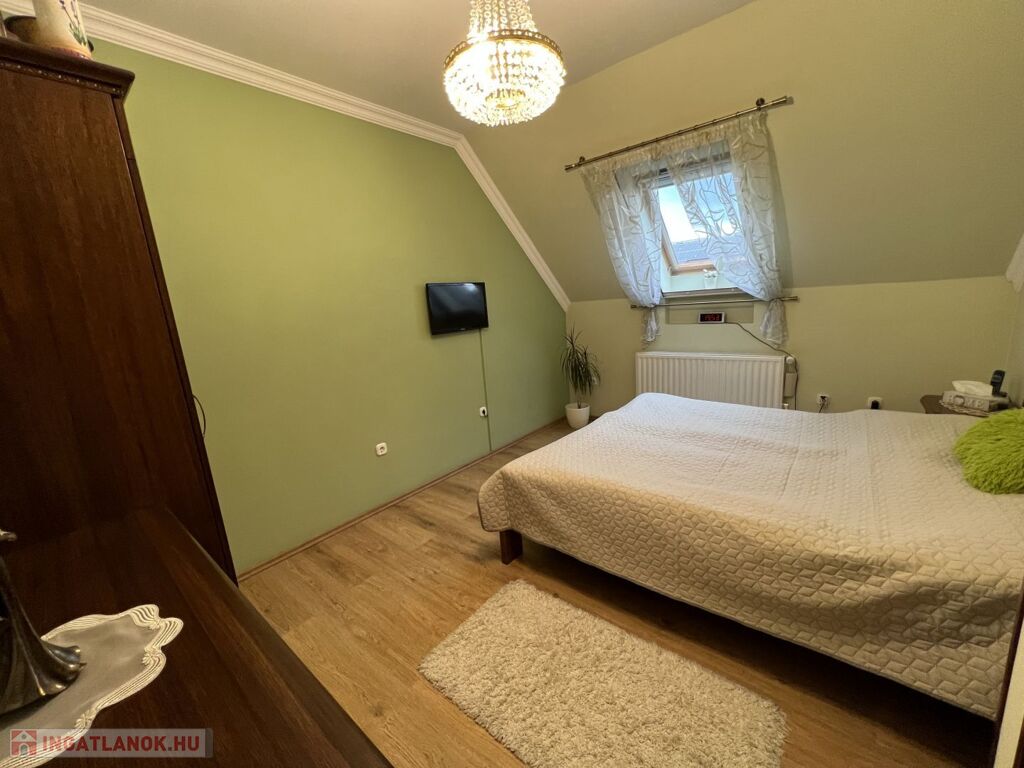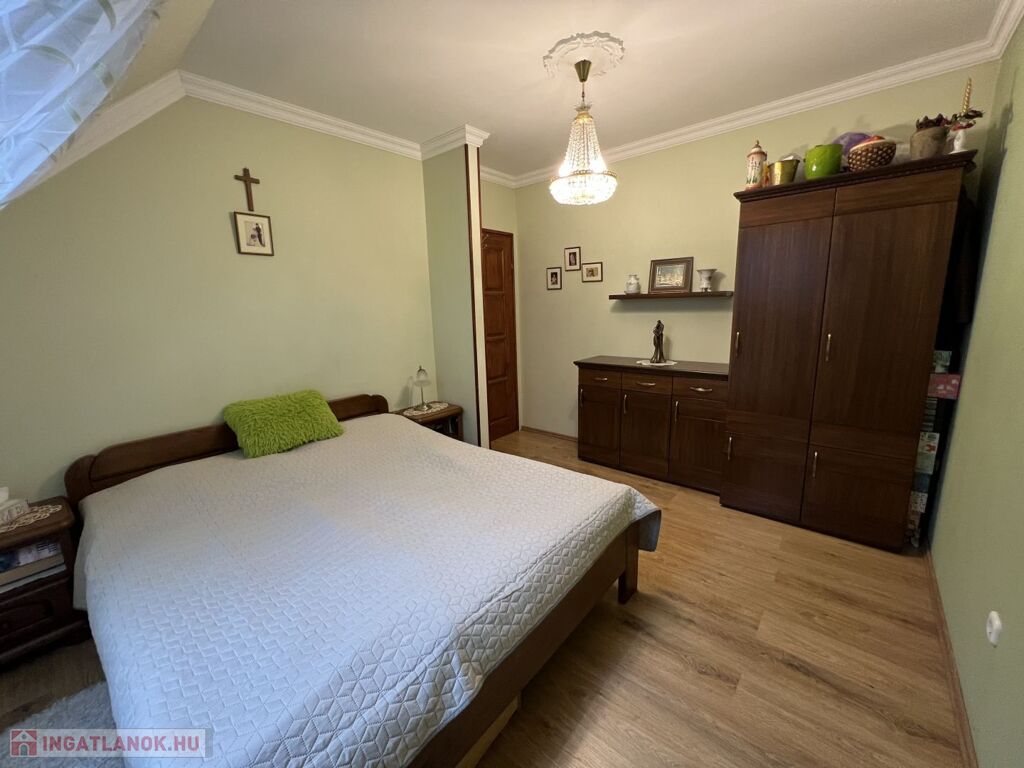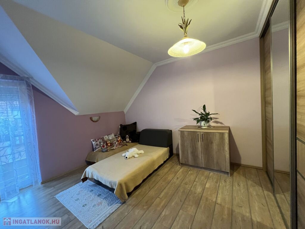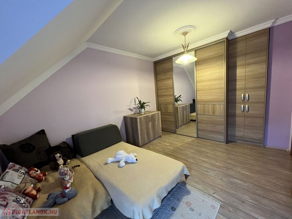 A lakás átgondolt tervezésű alaprajzának köszönhetően teljesen elkülönül az emeleti magánszféra, mely 3 emeleti beépített szekrénnyel rendelkező nagyméretű lakószobát és egy sarok fürdőkáddal, zuhanyzóval, mosdóval valamint wc-vel ellátott tágas fürdőszobát foglal magába. Az emeleti közlekedőből nyíló padlásfeljárón egy szigetelt 40 m2 es padlás érhető el, mely méretéből adódóan számos pakolási lehetőséget kínál.