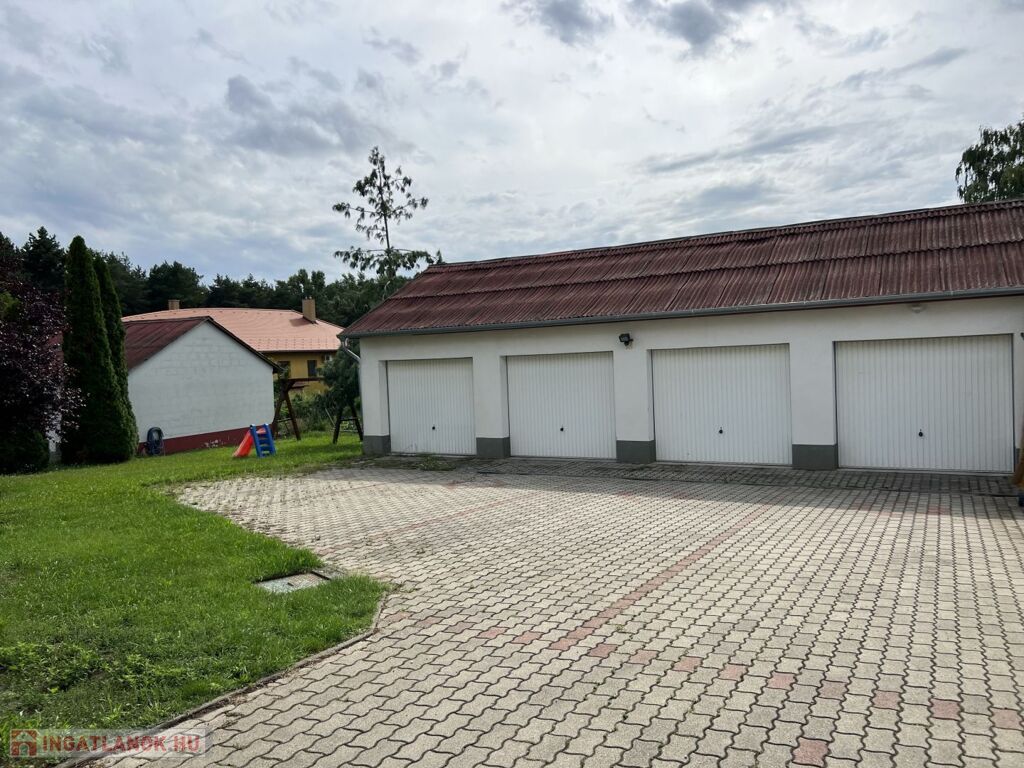 A parkolás a ház előtt több gépkocsi számára biztosított, valamint az elektromos kapun át megközelíthető udvari külön hrsz.-on szintén elektromos kapuval ellátott 18 m2-es garázsban ( opcionálisan megvásárolható 12 M) ill. az előtte lévő térkövezett részen lehetséges. A kb. 5m2-es tároló a garázs mögött található.