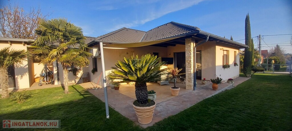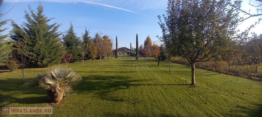 Győr kedvelt kertvárosi részén, Ménfőcsanak csendes, forgalom mentes mellékutcájában kínálom eladásra ezt a gyönyörűen parkosított 1830 m2-es telken lévő, nappali + 3 hálószobás, újszerű állapotú, 2014-ben téglából épült családi házat.