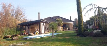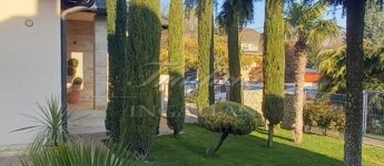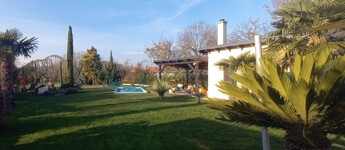 Az 1830 m2-es gyönyörűen karbantartott, parkosított, trópusi, mediterrán hangulatú telken a ház mellett egy medence, egy kazánház és egy fedett tároló is helyet kapott.