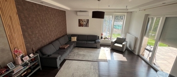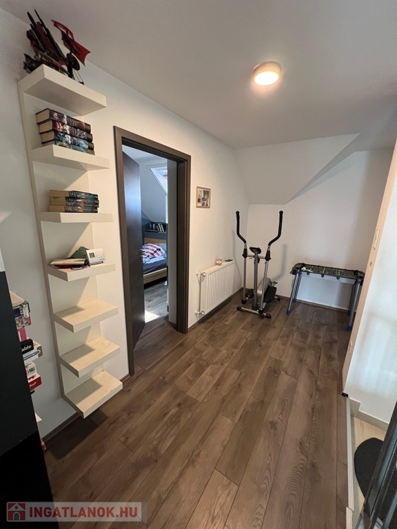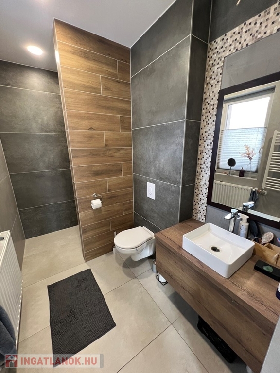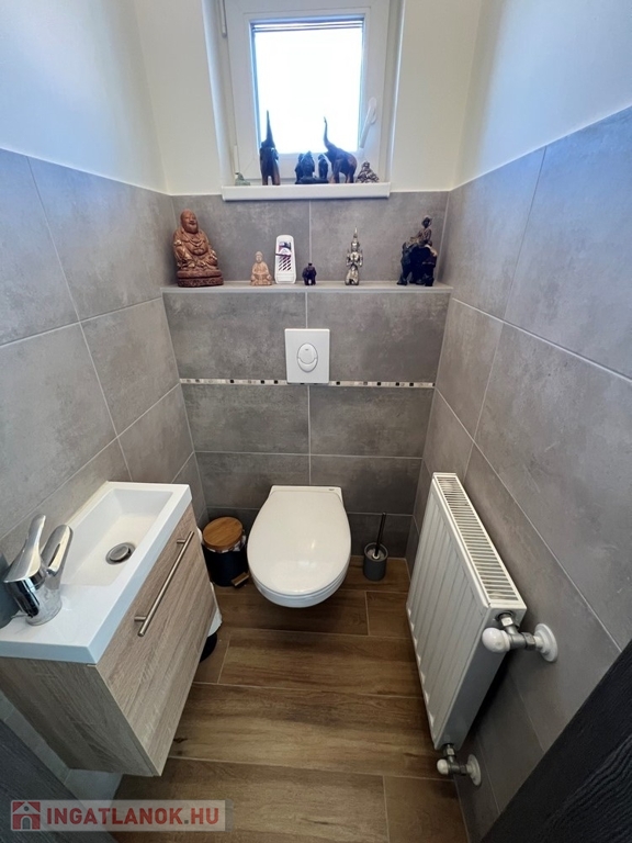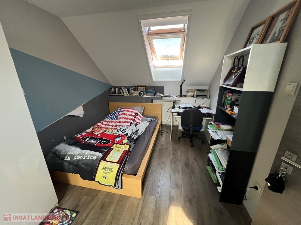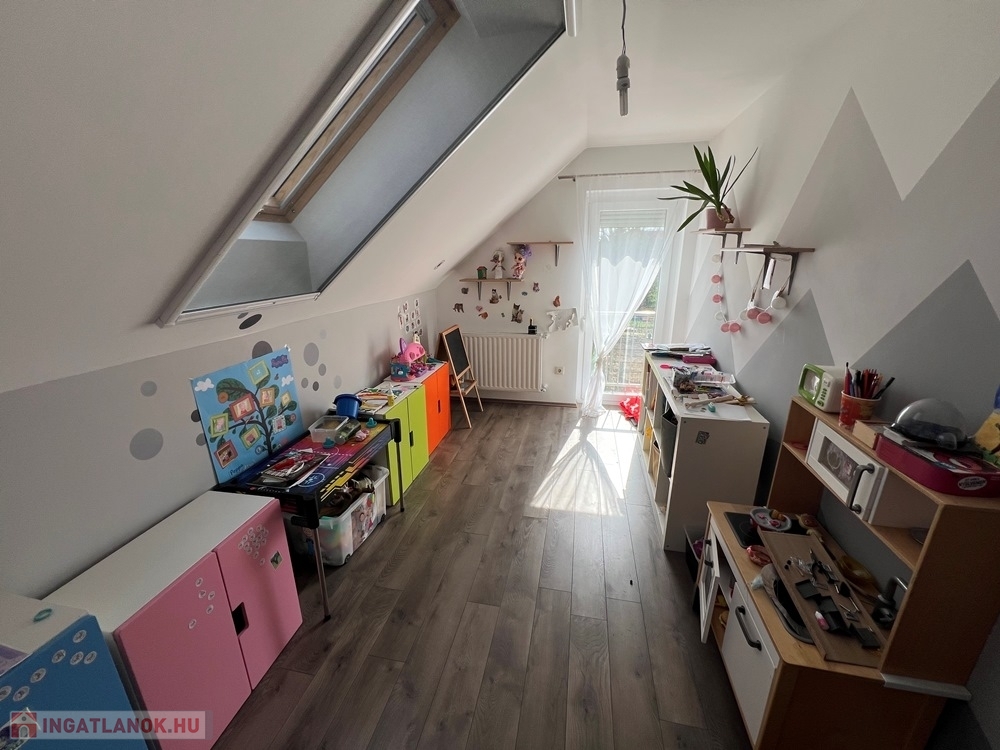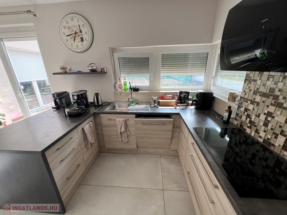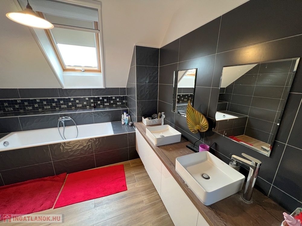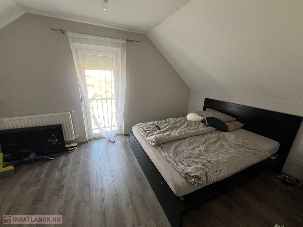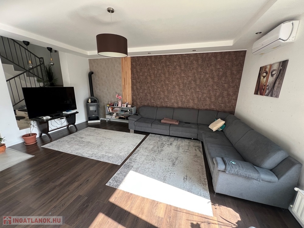 Győrújbarát kedvelt részén, 622 m2-es, összközműves, 29 M SZÉLES UTCAFRONTÚ telken lévő, amerikai konyha - étkező – nappali + 5 HÁLÓSZOBÁS, továbbá kamrával, háztartási helyiséggel, 2 db fürdőszoba - WC-vel felszerelt, KLIMATIZÁLT, 173 m2 hasznos alapterületű, kiváló állapotú, újszerű, duplakomfortos családi ház, 33,78 m2-es KÉT ÁLLÁSOS GARÁZZSAL, 25,05 m2-es TERASSZAL eladó.