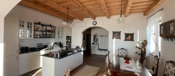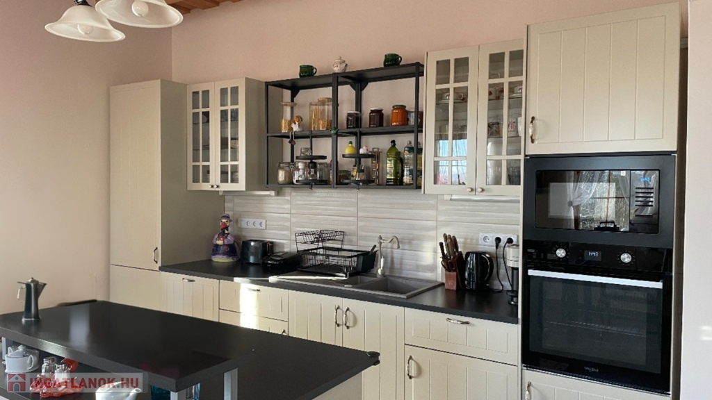 Jelenleg: 1 szinten, 2 fürdőszoba, 3 hálószoba és 1 amerikai konyhás nappali, kamra és hatalmas terasz áll rendelkezésre.