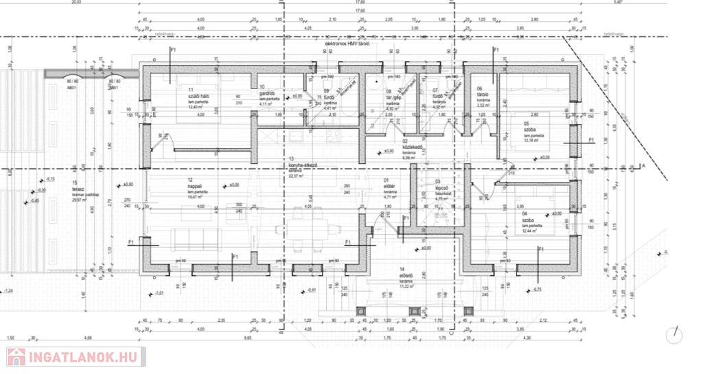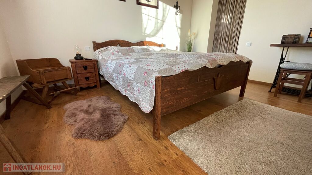 Különlegessége, hogy az egyik hálószobája tágas, átjárható gardróbszobával kapcsolódik a fürdőszobához.