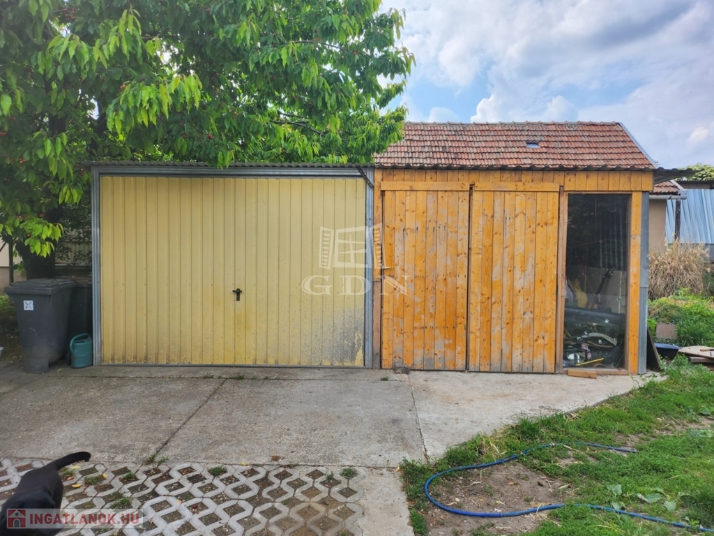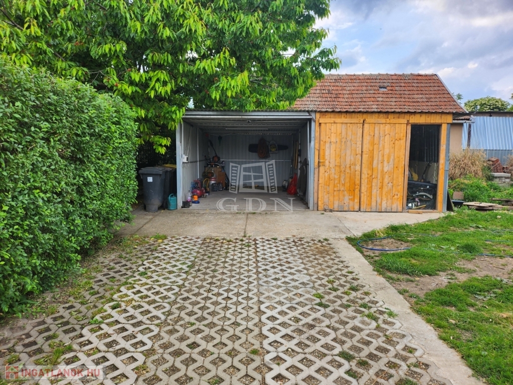 Az ingatlanon található még egy 15nm-es garázs melybe autó beálló út vezet, valamint mellette egy kisebb tároló is helyt kapott. Az épülethez elkezdtek még egy szobát hozzáépíteni, mely még nincs kész, de a hozzá szükséges építőanyagok rendelkezésre állnak. Az udvarban egy kisebb kerti tó is van kis kutacskával, mely szépen kiegészíti a fákkal, bokrokkal és sövényekkel díszített füves környezetet.