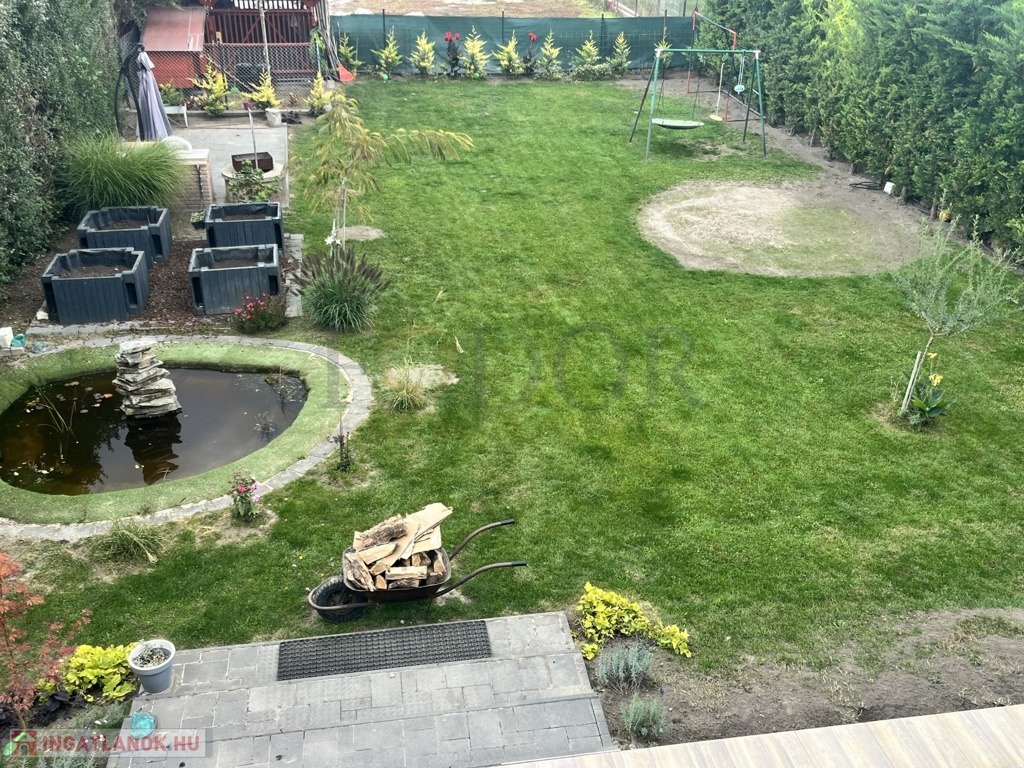 A ház mindkét oldalán autóbeállóval ellátott oldalkert található, az utcafronton rendezett előkert, míg hátul tágas, teljesen intim hátsó kert várja a pihenni vágyókat.