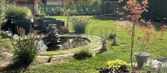 A telek igényesen parkosított, automata öntözőrendszerrel, amely fúrt kútról működik.