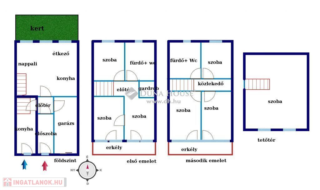 2. lakás 91nm földszint- második emelet- tetőtér 4 hálószobás a két lakás között a földszinten igény esetén van átjárási lehetőség.