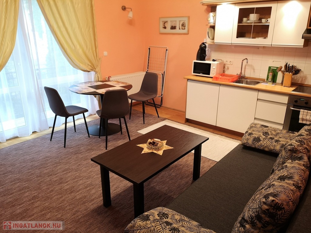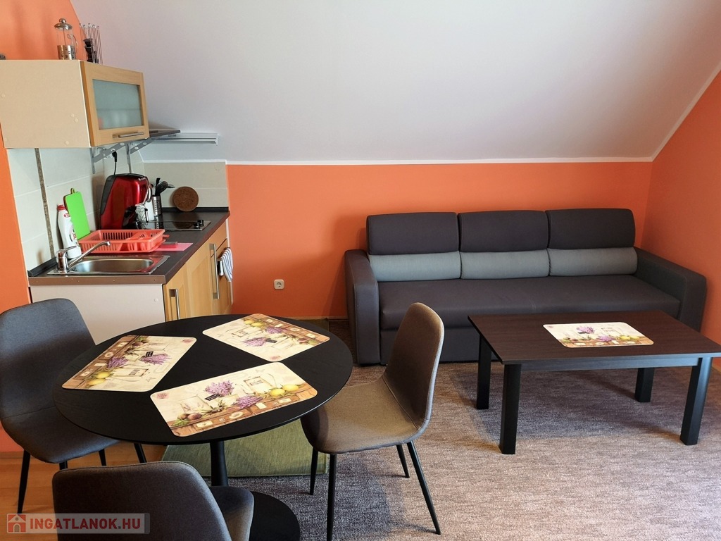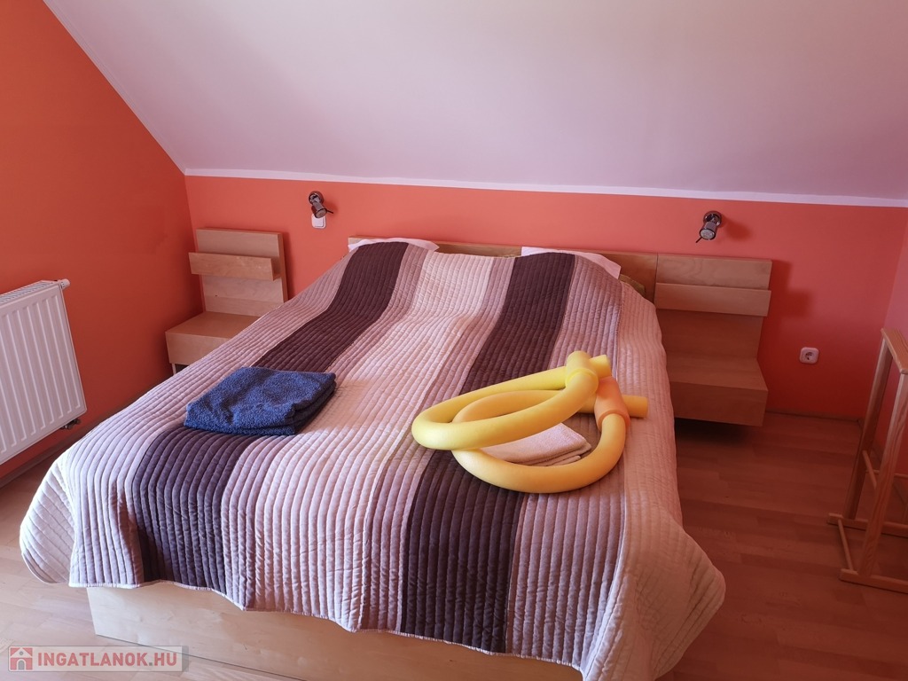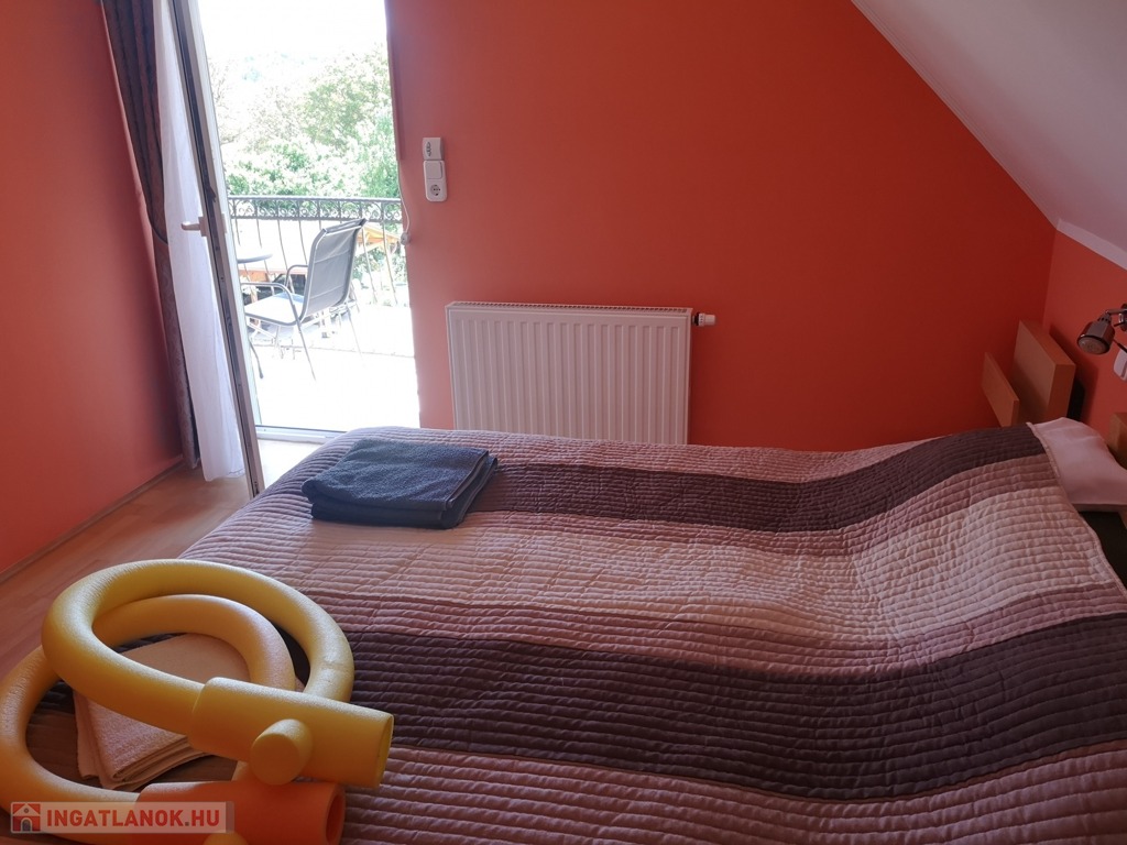 Zala vármegye, Hévíz 300m2-es, 3 szintes apartmanház eladó. A jelenleg is üzemelő, az ingatlan nyilvántartásban „kivett lakóház, udvar” megnevezésű ingatlan alsó szintjén konyha étkezővel, háztartási helyiség, tároló zuhanyzó illemhelyiséggel, külön illemhelyiség és szoba található. Átjárás az 50m2-es garázsba. A középső (fogadó szinten) a hallból jutunk a két apartmanba míg az emeleten további két stúdió és egy apartman került kialakításra. Az helyiségek teljesen felszereltek. Így összességében az ingatlanban 10fő (pótágyazással további 6 fő) elszállásolható. A ház 2000-ben épült, felújítása 2012-ben megtörtént (ekkor kapott 10cm szigetelést is). Azóta is folyamatosan karbantartott. A klímával, elektromos redőnyökkel felszerelt igényes ingatlan melegéről gáz-kazán gondoskodik. Legutóbbi fejlesztésként 2023-ban 8kW-os napelemes rendszer telepítésére került sor. A házhoz tartozó 879m2 telken gépjárműbeállók, a füvesített kertben grillező, pihenő és gyümölcsfák szolgálják a pihenők kikapcsolódását. Az ingatlan vételára teljes felszereléssel értendő. A ház alkalmas lehet bérbeadásra, de akár több generációs család lakhatására is
