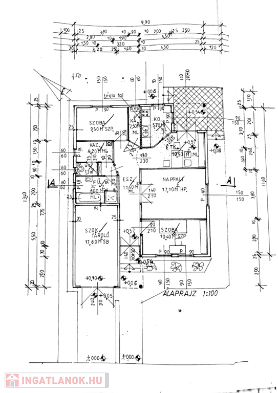 - Padlószigetelés 3 cm, födémszigetelés 10 cm; járható padlás, feljáró a garázsból