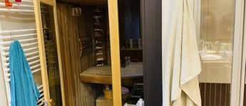 Otthoni SPA: Két fürdőszoba, melyből az egyik egy komplett wellness részleg szaunával, sarokkáddal és zuhanyzóval.