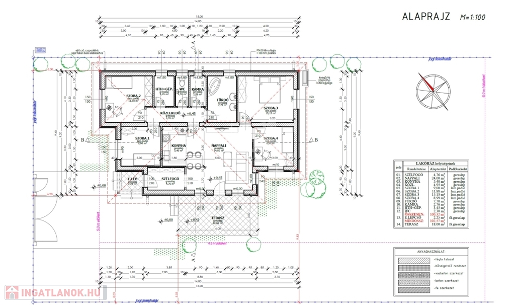 Jászberényben a Szatmári lakóparkban a Bársony utcában , 737 m2-es telken, újonnan épülő nettó 100,12 m2 hasznos lakótérrel rendelkező, 4 szoba + nappalis önálló családi ház eladó.