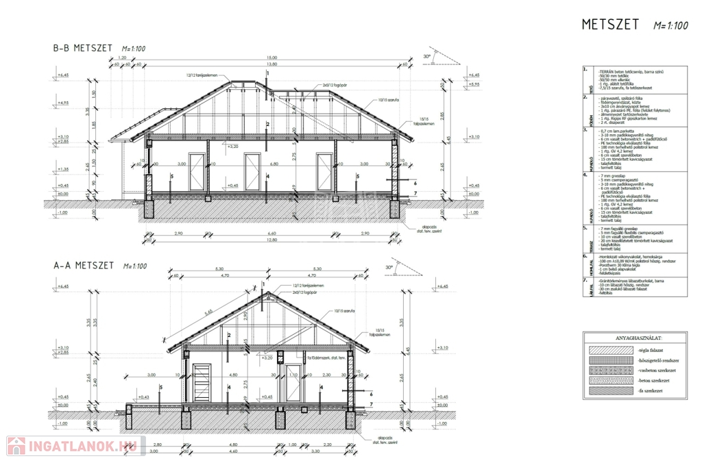 Az ingatlan 30-as Nútféderes tégla falazóelemből épül, fa födémmel.