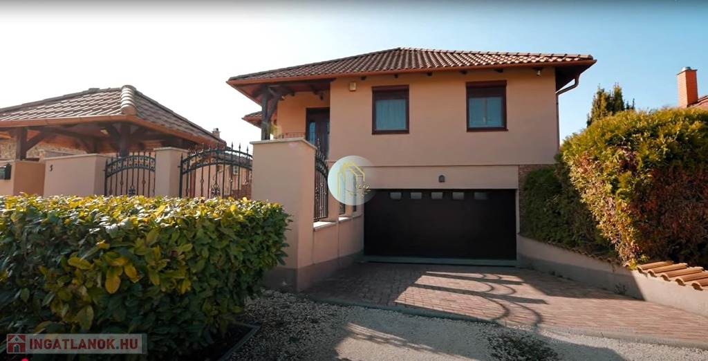 A 250 m²-es lakrésszel rendelkező két szintes családiház egy 1012 m²-es parkosított telken helyezkedik el.