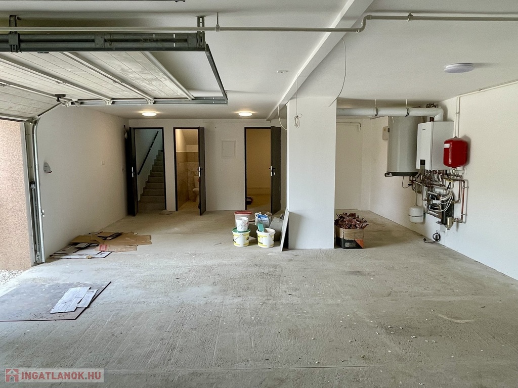 Pince szint: dupla beállásos garázs, műhely, kazánház, tároló helyiség, WC
