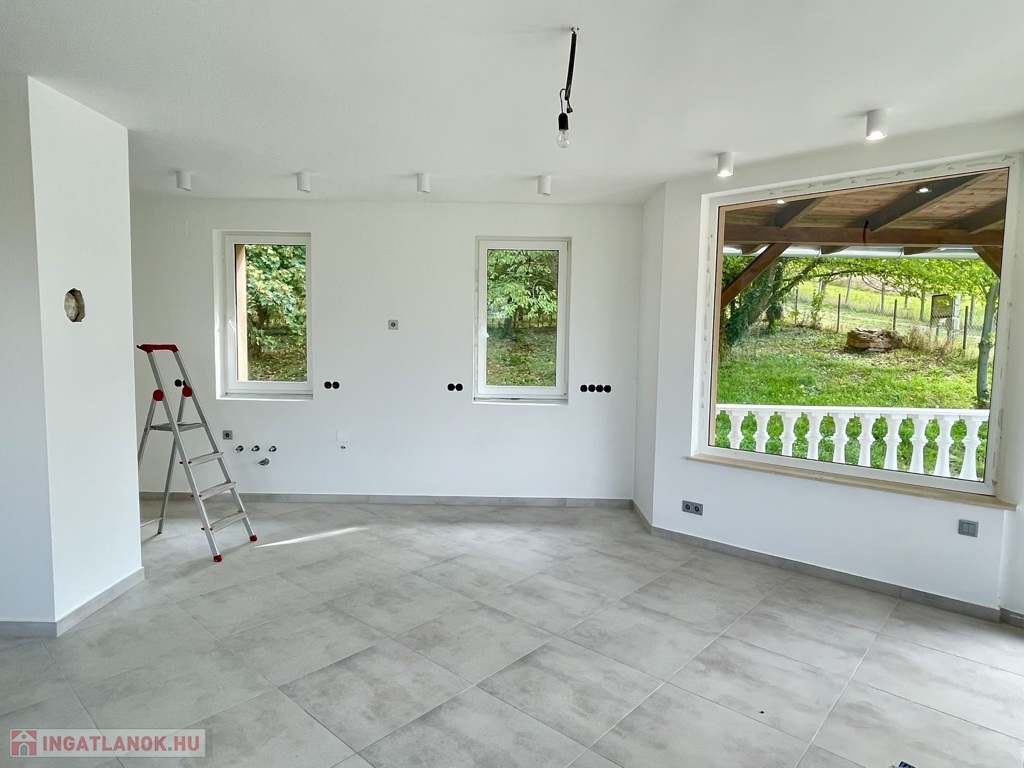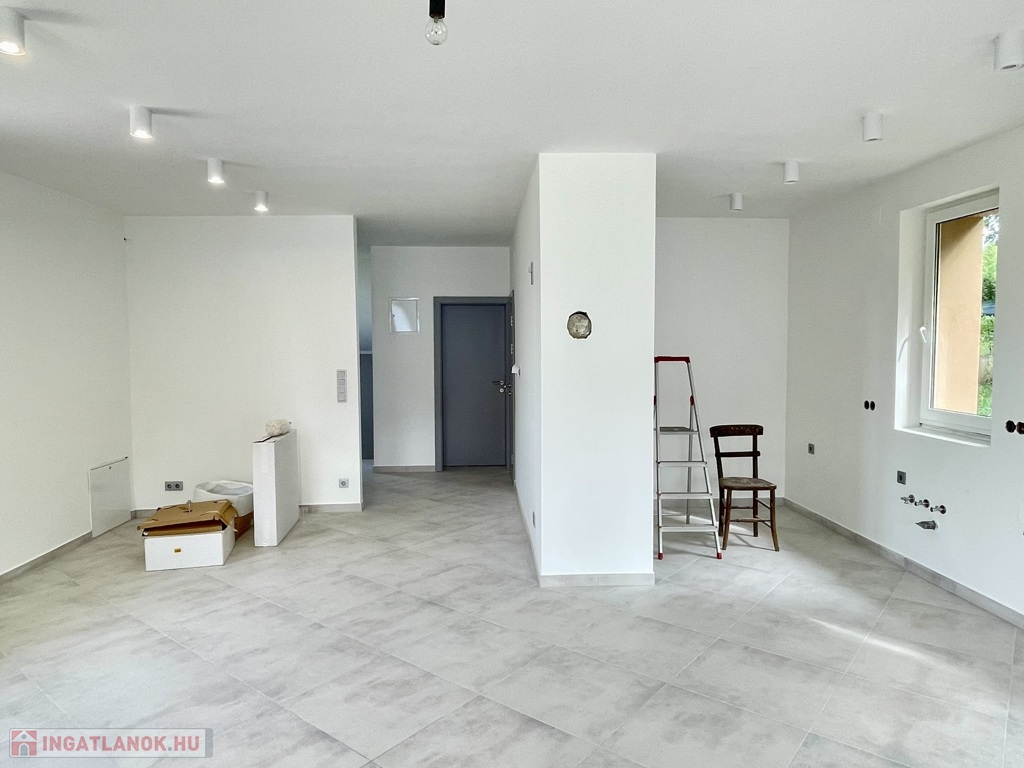 Alsó szint: főbejárat, nappali–konyha–étkező (a konyhabútor és gépesítés az új tulajdonos feladata), hálószoba, fürdőszoba zuhanyzóval és WC-vel, déli fekvésű terasz