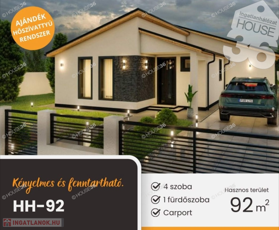 Stílusos és energiatakarékos tégla építésű családi otthon. 92 m² modern kényelem, 3 hálószoba, hőszivattyús padlófűtés és kiváló hőszigetelés – egyik legnépszerűbb típusterve, amelyet úgy terveztünk, hogy hosszú távon is kényelmes, gazdaságos és fenntartható otthonod legyen.