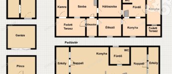 -3 tágas szoba, ebből kettő a földszinten és egy a padlástéren, mely el van osztva a térben nappalira, hálóra és teakonyhára.