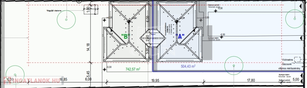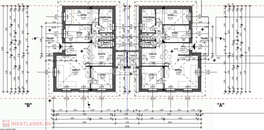 Hátsó "B" lakás 742 m2 kert, 75 m2 ára: 69.900.000 ft
