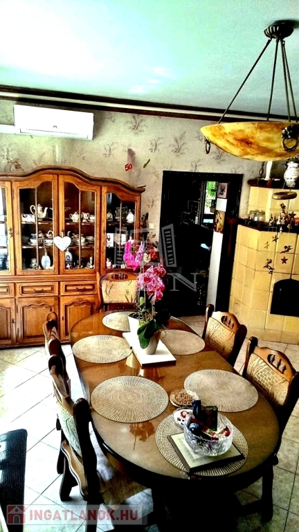 Fűtés: gázkazán, 5 éves vegyes tüzelésű kazán, cserépkályha, hűtő-fűtő klíma