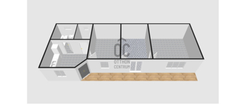 Az utcáról az udvaron át megközelíthető házba, a kis fedett teraszról léphetünk, a konyha-étkezőbe, melyből a mosdó, a spejz, és egymást követően a szobák érhetők el.