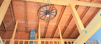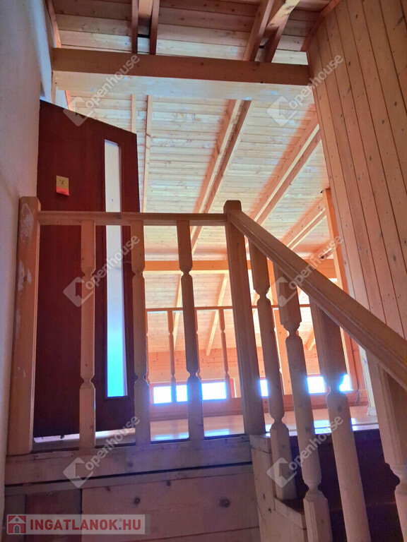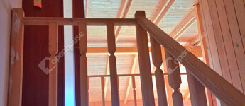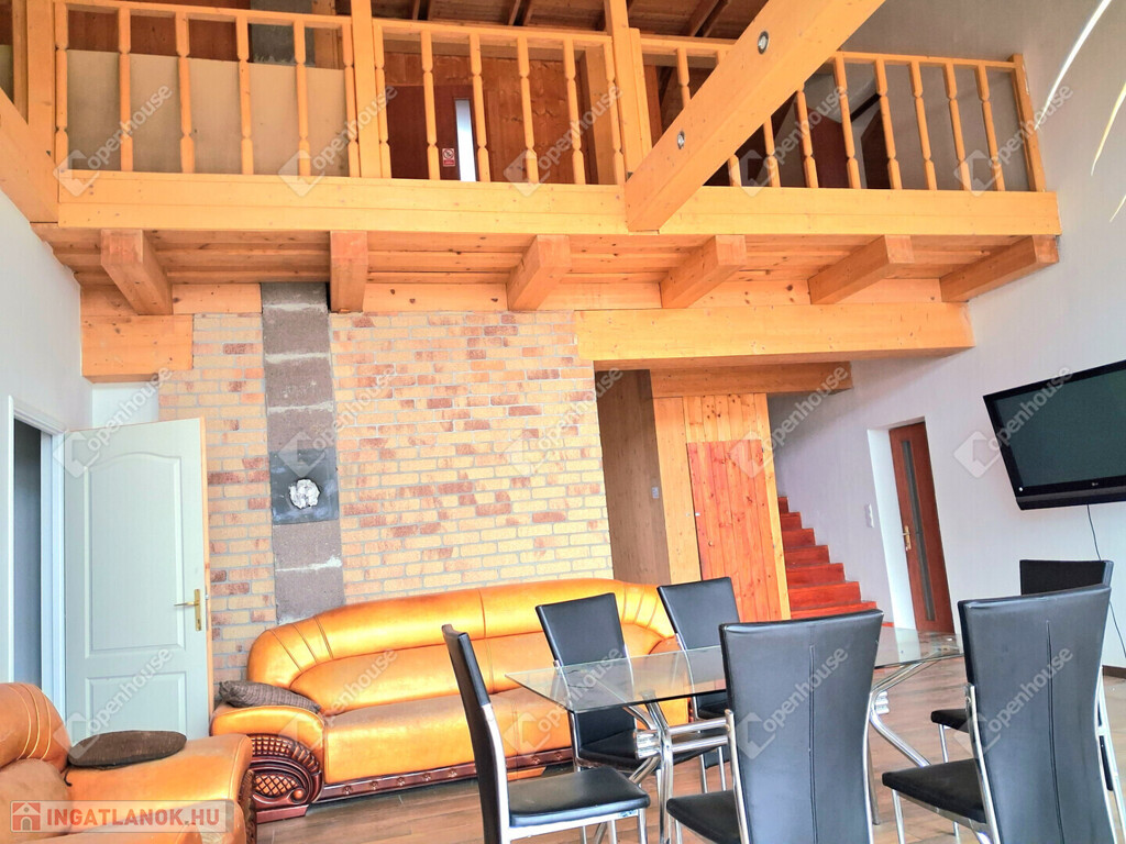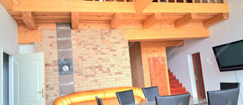 Az egész épületben a fa meleg hangulata dominál. Fölszinten és az emeleten látszó gerendák, a fürdőszobában minőségi burkolat,az egyedi készítésű fa beltéri ajtók, mind melegséget árasztanak.Minden szegletéből a nyugalom, a kényelem és a kifinomultság sugárzik.