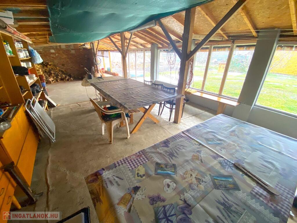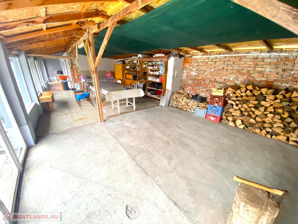 - Az épület mellett található egy 123 m2-es melléképület, amiből egyik rész egy zárt nyári konyha. Mellette van egy részben nyitott, terasz, kocsibeálló, fatároló.