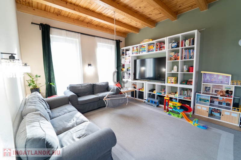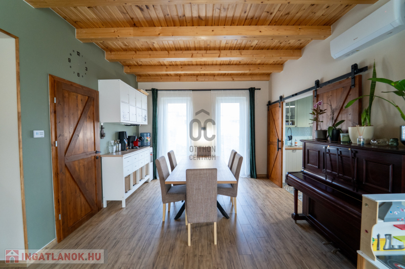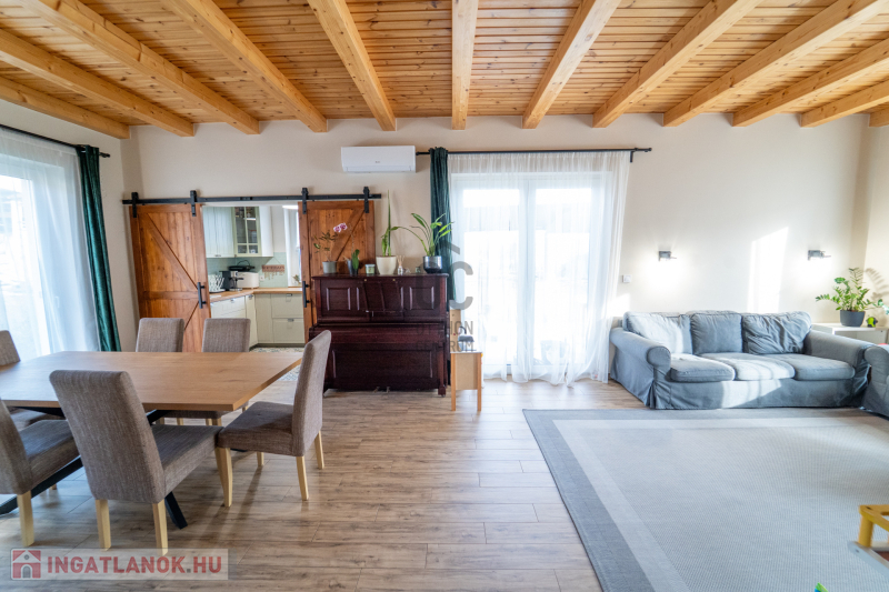 Az ingatlan étkezős-konyhás-nappalival, 4 szobával és 2 fürdőszobával 4 wc-vel rendelkezik, így rendkívűl ideális választás családok számára is. A tágas nappali világos és barátságos légkört teremt, amely tökéletes helyszíne a közös családi pillanatoknak. A ház prémium kivitelezésének köszönhetően nemcsak esztétikai élményt nyújt, hanem a fenntarthatóságra is nagy hangsúlyt fektet. Passzívház elvekhez közelinek tervezett otthonban gáz (cirko) fűtés és klímás hűtés biztosítja a kellemes hőmérsékletet egész évben.