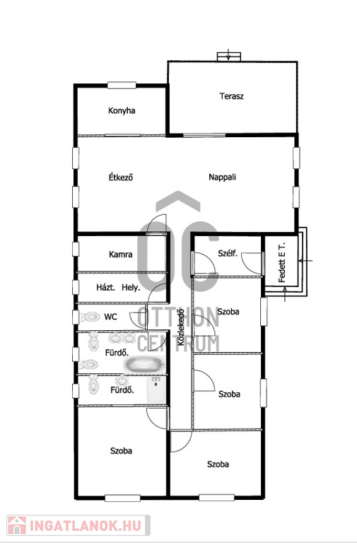 - 2 nagy méretű fürdőszoba, igényes burkolatokkal, WC-vel, káddal és zuhanyzóval