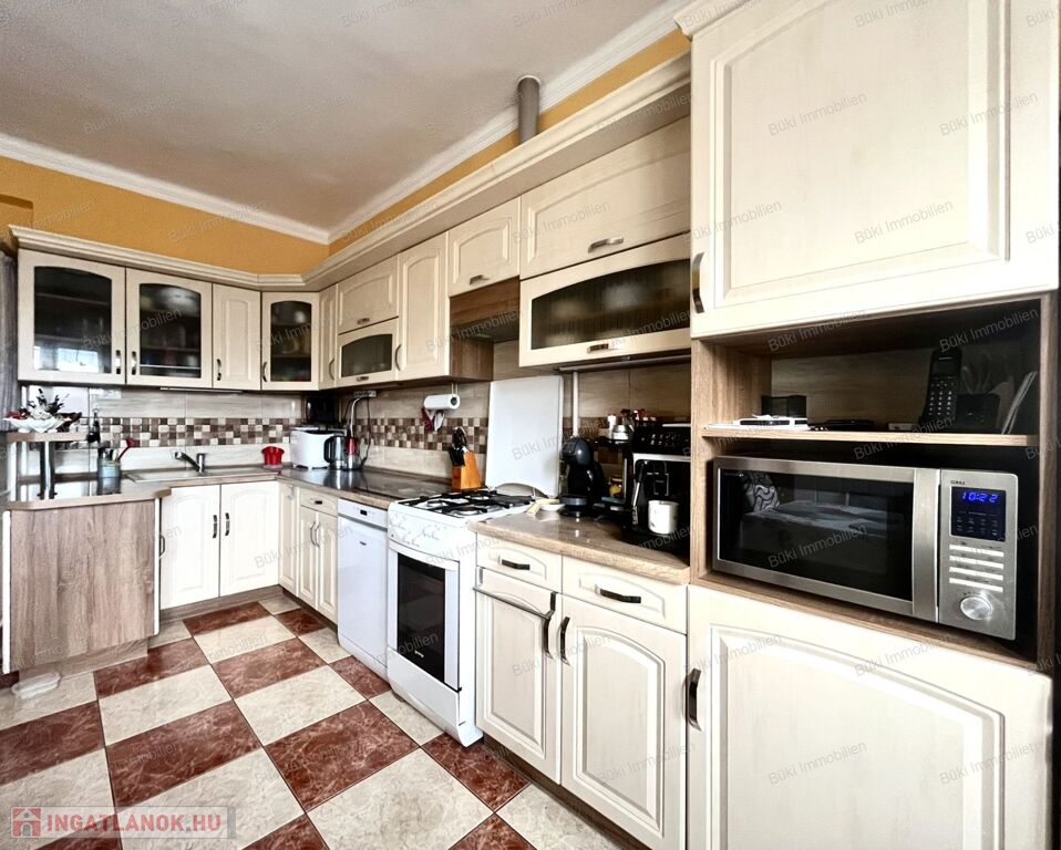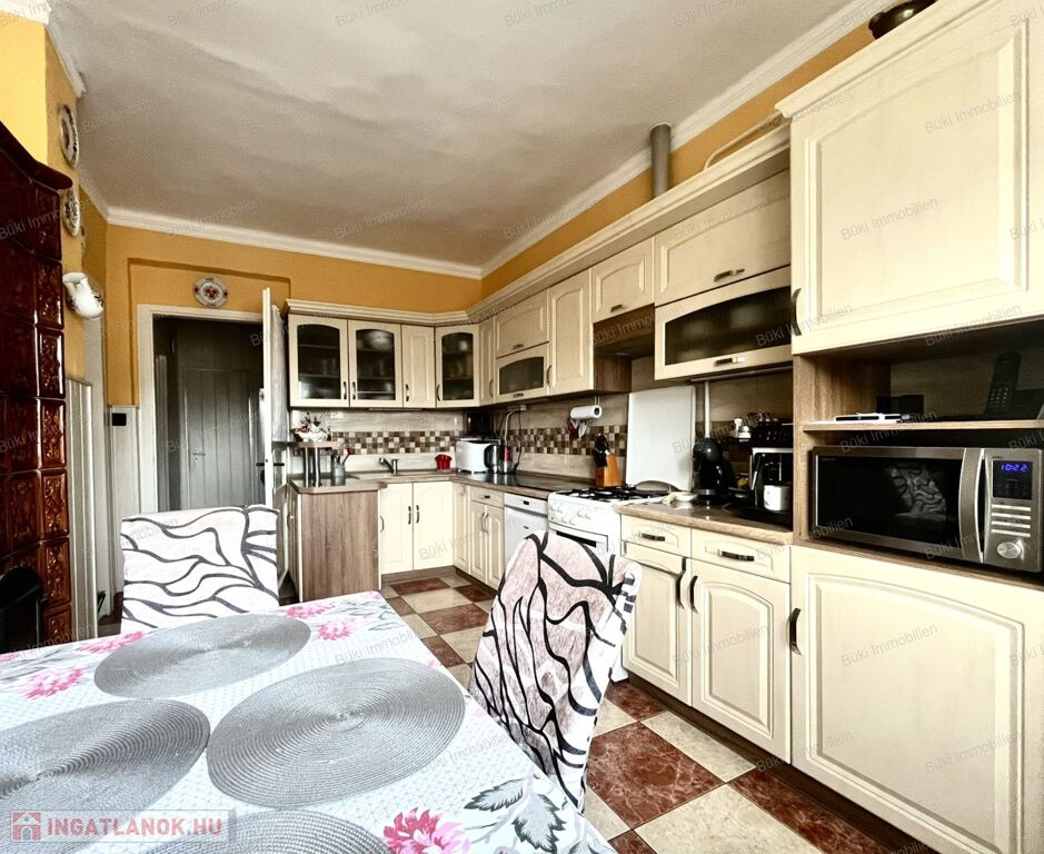 Miskolcon, a közkedvelt Győri-kapuban, 463 m²-es, gondozott telken kínálok eladásra egy jó állapotú, háromszobás családi házat garázzsal és több melléképülettel. Az eredeti épület 1988-ban teljes körű átépítésen esett át, tégla és szilikát falazattal készült, a tető ekkor teljes cserét kapott cserépfedéssel, amely ma is kifogástalan állapotban van. A fa, hőszigetelt ablakok redőnnyel felszereltek, a bejárati ajtó műanyag.