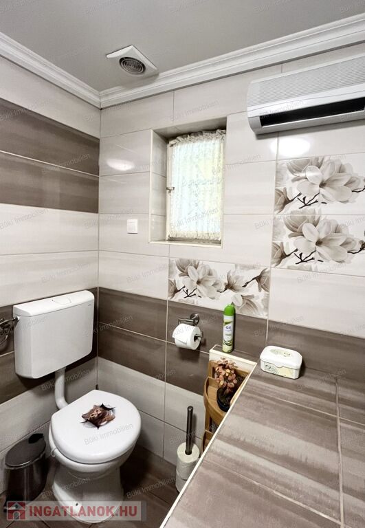 A műszaki tartalom meggyőző: a villamos- és vízhálózat felújított, három fázis bevezetve. A fűtésről egy öt éve beépített modern Bosch kondenzációs kazán gondoskodik, amelyet három split klíma és egy hangulatos cserépkályha egészít ki – utóbbi két helyiséget is képes befűteni, igazi otthonos meleget teremtve. A melegvizet mindkét épületben villanybojler biztosítja. A tetőre három éve egy 8 kW-os napelemrendszer került, amely még éveken át szaldó elszámolásban működik, így jelentős megtakarítást biztosít.