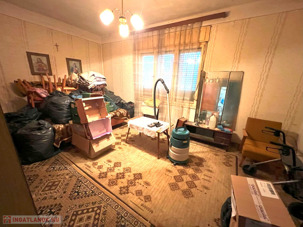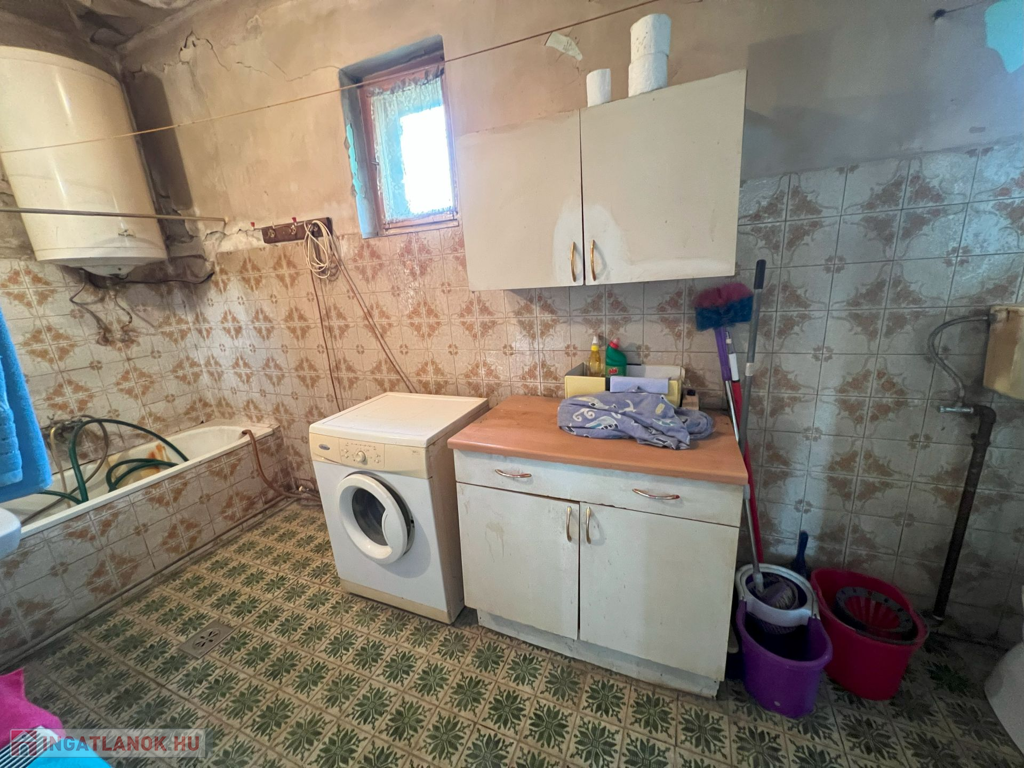 Az ingatlan jellemzői: Az ingatlan téglaépítésű, 98 m² alapterületű, felújítást igényel ugyan, azonban jelenlegi állapotában is lakható, így akár azonnal birtokba vehető. A ház praktikus elrendezésű, amely magában foglal egy üvegfallal leválasztott előszobát, konyhát, fürdőszobát WC-vel, kamrát, valamint három szobát.