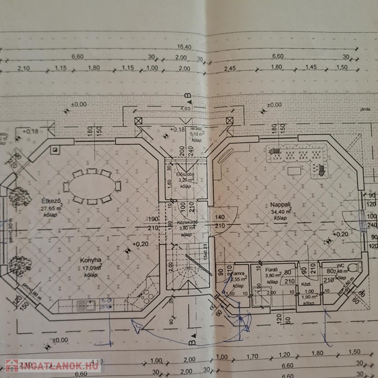 Szoba alakítható a földszinten is, a hatalmas, tágas nappaliból (34,40 m2).
