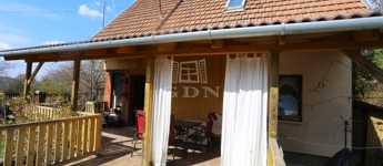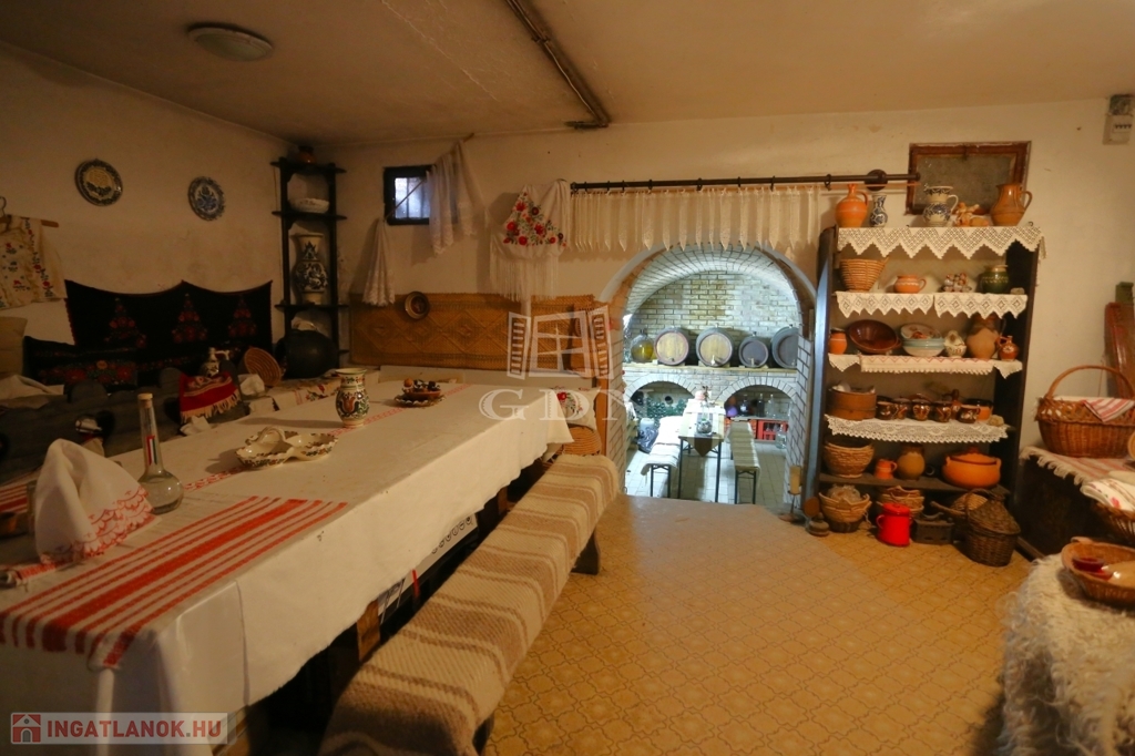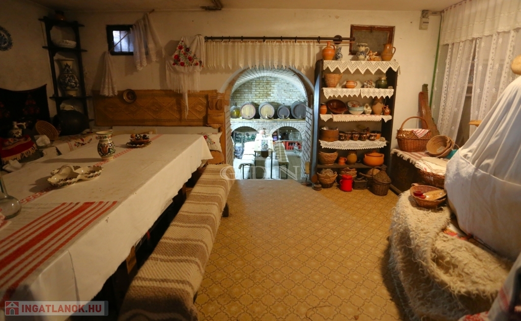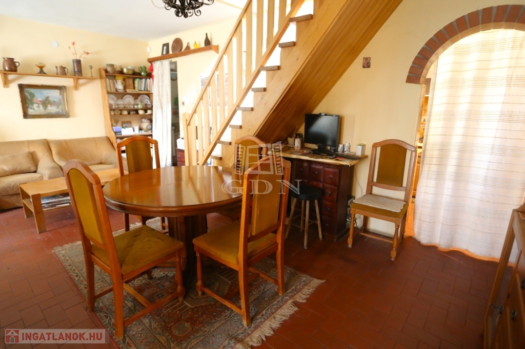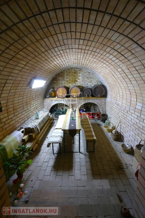 A település központjától 6 perc távolságra található a hirdetésben kínált, 1728 m²-es telken álló önálló családi ház borospincével.