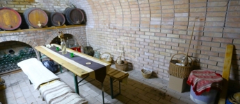 - szép állapotú klinker tégla burkolattal rendelkező borospince,