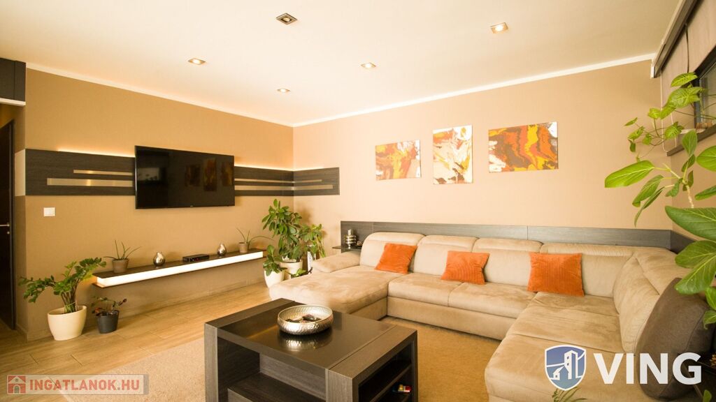 Az ingatlan a város egyik legjobb lakóparkjában található. A belső tér kialakítása, a burkolatok, a felhasznált anyagok, a dekorvilágítás mind azt az érzetet erősítik, hogy aki itt lakik, az igényes és nem a tucat megoldások híve.