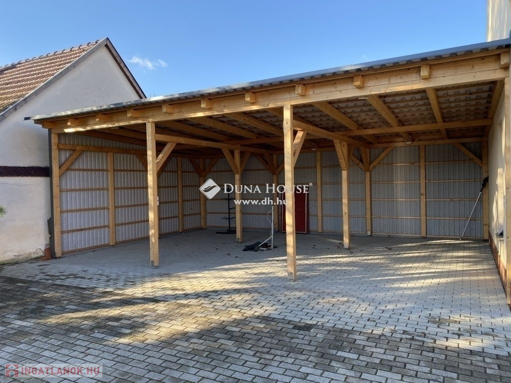 Az udvarban található egy 3 állásos garázs, elektromos kapuval, elektromos autó töltővel, továbbá egy fedett 3 állásos autóbeálló.