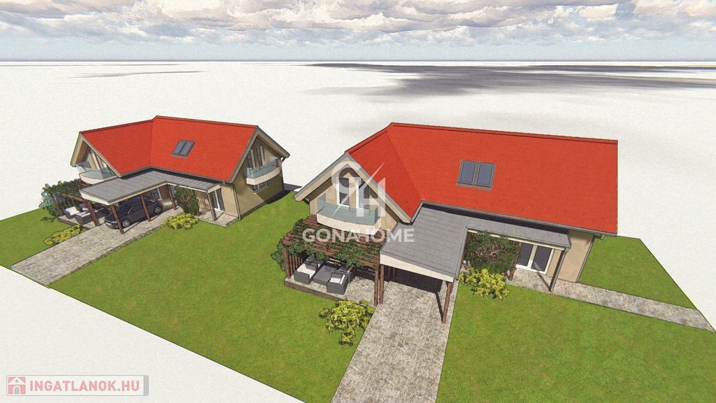 902 m²-es sarki telken, külön bejárattal, épül két 133 m²-es, modern családi ház, 451 m² saját telekrésszel.