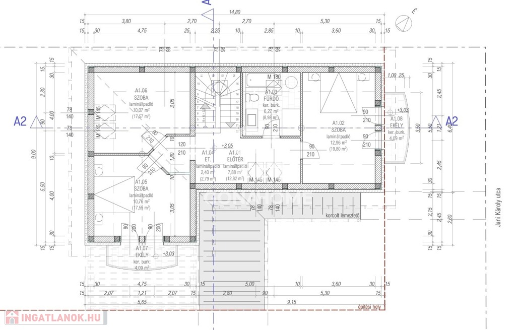 - Erkély: 4,09 m2, korcolt lemezfedéssel