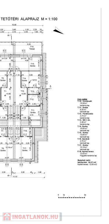 Földszinten: előtér, gardrób, nappali - konyha-étkező, melyhez fedett terasz kapcsolódik illetve 20 nm-es garázs.Emeleten: 4 hálószoba, gardrób, fürdőszoba és közlekedő található.