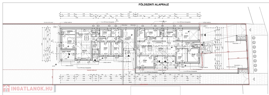 Kültér: Két fedett terasz, saját kert, parkolási lehetőség a garázsban és a telken.