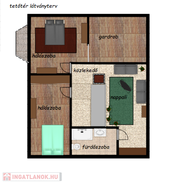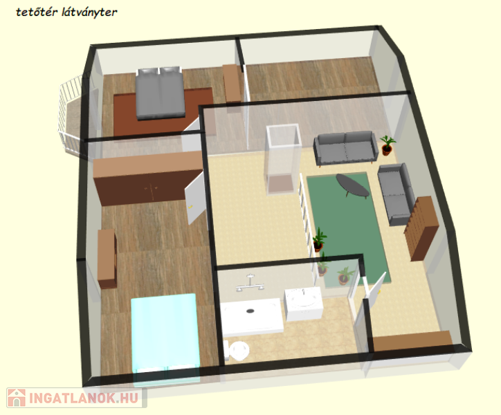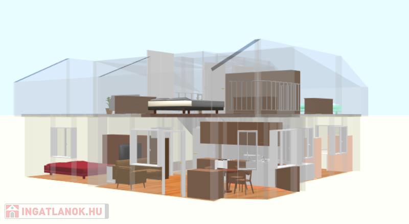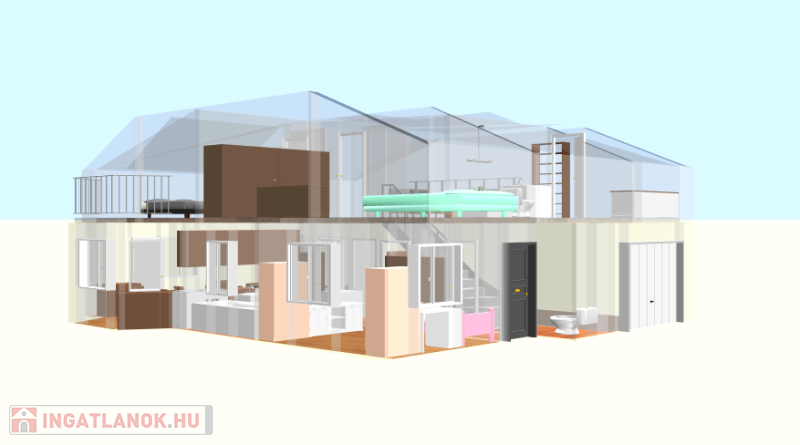 -a tetőtérbe a feljutás lakáson belül történik, de akár kívülről is kialakítható, így a felső szint akár egy külön generációnak kialakítható,