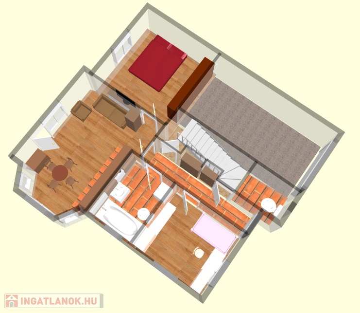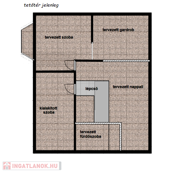 - szintén 70m2 nagyságú élettér lehet, ebből egy szobát már kialakítottak.